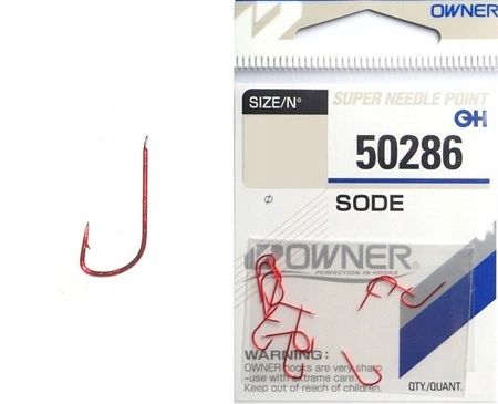model SODE, to jedne najpopularniejszych kształtów w bogatej gamie firmy OWNER. Zostały wykonane z wysokowęglowej stali, która zapewnia bardzo dużą wytrzymałość. To co pierwsze rzuca się w oczy to precyzja wykonania. Dzięki specjalistycznemu procesowi chemicznego ostrzenia, japoński producent osiągnął nadzwyczajną ostrość i odporność na stępienie. Cieńszy drut sprawia, że jest to idealny hak do łowienia na białe robaki lub ochotkę. Podgięty łuk kolankowy bardzo dobrze trzyma rybę podczas holu i redukuje liczbę spinek.