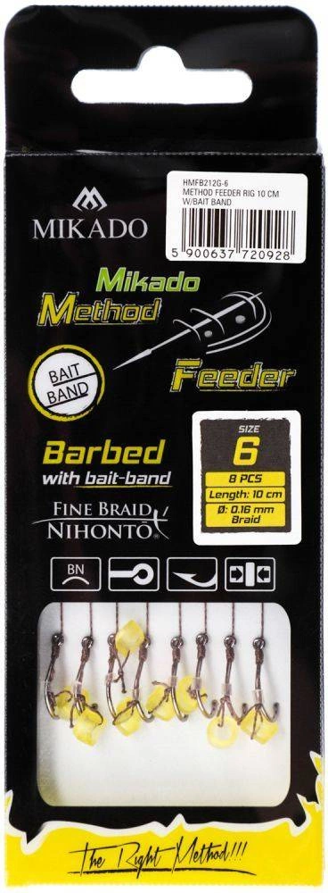 - Profesjonalne gotowe przypony do methody zawiązane na wyjątkowo miękkiej I mocnej plecionce Nihonto Fine Braid w maskującym brązowym kolorze.
