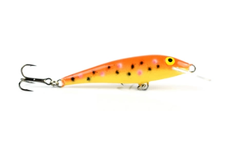 Modelu Ukleja Igła w rozmiarze 6 cm zdecydowanie najczęściej używamy na pstrągi. Sprawdzi się on doskonale zarówno podczas łowienia pod prąd, jak i z prądem. Mimo dosyć smukłej konstrukcji doskonale trzyma się nurtu dzięki czemu możemy go skutecznie poprowadzić nawet w bardzo silnym uciągu. Łowiąc pod prąd wypuść woblera wzdłuż zalanych trzcin lub podmytej burty, tam na pewno czai się pstrąg. Zwijaj bardzo powoli z przytrzymaniami, a w miejscu gdzie najbardziej spodziewasz się ryby zatrzymaj się na dłużej. Nie martw się, ten wobler nie zgaśnie i będzie cały czas prowokował pstrąga do wyjścia ze swojej kryjówki i ataku. W późniejszej części sezonu możesz łowić tym woblerem sprowadzając go z prądem. Wykonaj rzut pod prąd w skos pod drugi brzeg. Nurt będzie sprowadzał woblera za Ciebie, Ty musisz tylko delikatnie podszarpywać. Charakterystyczna dla tego modelu migotanie skusi będącego w okolicy pstrąga.