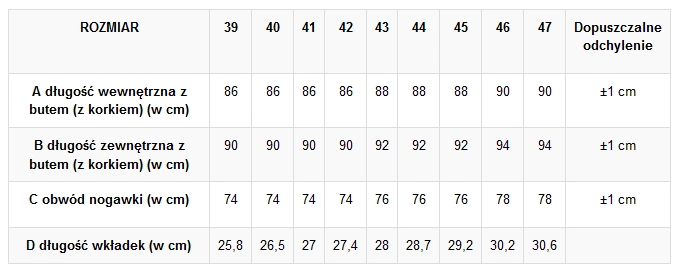 Szeroka gama rozmiarów, sprawi, że każdy znajdzie egzemplarz wygodny dla siebie.