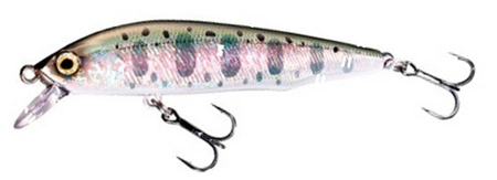 Firma Shimano od lat znana jest z produkcji doskonały wędek i kołowrotków. Od jakiegoś czasu wzięli się także za tworzenie przynęt i musimy przyznać, że wyszło im to równie dobrze jak z kołowrotkami. Shimano Cardiff Flügel Flat 70F to znakomity wobler typu twitchbait. Jego największa zaletą jest system przenoszenia ciężaru oparty na magnesach, dzięki czemu wobler osiąga bardzo dobre właściwości lotne i poprawia odległość rzutu. Wobler ten doskonale odskakuje na boki podczas szarpania, co w połączeniu z realistycznym wykończeniem sprawia, że do złudzenia przypomina w wodzie małą rybkę. Wielkim atutem tej przynęty jest fakt iż bardzo dobrze, szeroko pracuje także podczas jednostajnego prowadzenia dzięki czemu możesz go z powodzeniem używać nawet jeśli jeszcze nie zgłębiłeś tajników twitchingu. Całości dopełniają doskonałej jakości kotwice. Model ten doskonale sprawdzi się podczas łowienia pstrągów, okoni, a także innych drapieżników.