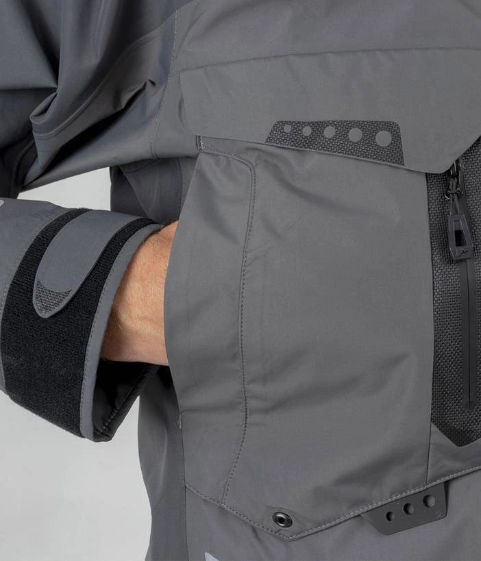 Prosty, minimalistyczny styl. Funkcjonalne rozwiązania opracowane z profesjonalnymi wędkarzami. 3-warstwowa membrana BRATEX® 20 000 mm H2O/20 000 g/m2/24 h z klejonymi szwami zapewnia 100% wodoodporność i oddychalność. Kurtka zabezpieczona jest również powłoką TEFLON® nadającą mu maksymalną odporność na wodę i brud. W kurtce zastosowano wodoodporny zamek błyskawiczny YKK® oraz zamki antybryzgowe w przy kieszeniach.