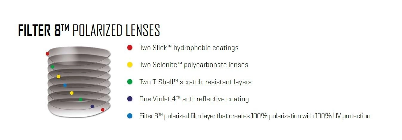 DOSKONAŁA POLARYZACJA - Soczewki polaryzacyjne Wiley X są wykonane z Selenitu (poliwęglanu), a polaryzacyjny filtr umieszczony jest w środku soczewek, zapewniając ochronę przed naruszeniem i zniszczeniem podczas noszenia i czyszczenia. Wszystkie polaryzacyjne modele WileyX produkowane są z użyciem tylko najlepszej technologii filtra polaryzacyjnego. Filtr umieszczony jest w soczewce przy tolerancji jedynie +/- 3% co czyni Wiley X jedyną firmą która może pochwalić się certyfikacją całej linii swoich produktów.