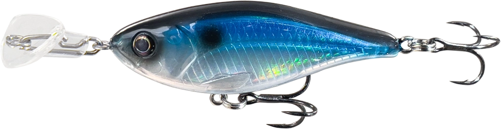 Cranky Shad posiad grzechotkę, realistyczne oczy, a także wewnętrzne folie holo, które nadają przynęcie bardzo realistyczny wygląd.