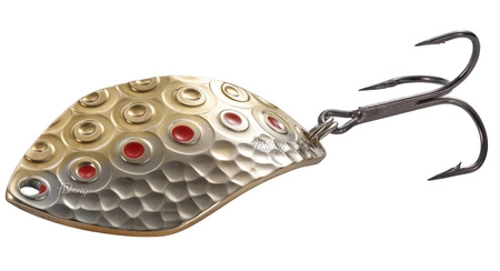 „Trumienka” swoja nazwę zawdzięcza przede wszystkim kształtowi, ale miana broni również skuteczność. Inni nazywają ją Rogatką tak czy inaczej, każdy wędkarz łososiowo/trociowy zna ten model, bo to jedna z popularniejszych blaszek na te gatunki.  Jej podstawową zaletą jest mocna,  obrotowa praca dobrze odczuwana na wędce w każdej fazie prowadzenia, nawet gdy łowimy w dryfie. To bardzo istotne przy obławianiu odległych miejscówek na przeciwległym brzegu rzeki. Blaszka szybko startuje i dobrze trzyma się nurtu, zarówno mocnego w łukach, jak i słabego na prostkach i płaniach. To istotne czynniki przy technice łowienia tzw. wachlarzem. Po rzucie lekko w górę lub dół rzeki (zależy gdzie zaczyna i kończy się rynna) sprowadzamy blachę tylko wędziskiem przesuwając je wolniej od nurtu, jednocześnie kołowrotkiem wybieramy luz linki. Można również dać przynęcie opaść na moment jeśli przyspieszymy ruch wędką względem nurtu a następnie ponownie  nią wystartować. Taka technika jest bardzo prowokacyjna i skuteczna.