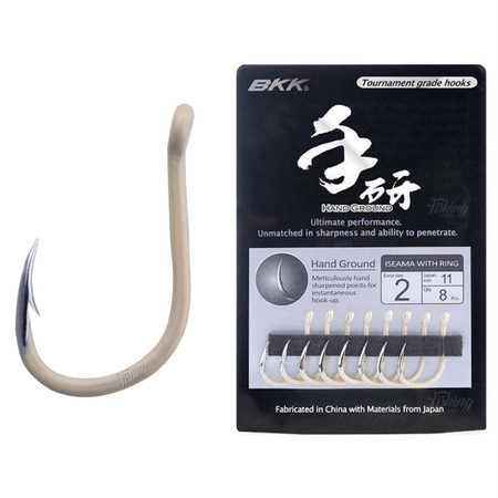 BKK Iseama-R Hand Ground to wszechstronne, uniwersalne haczyki przeznaczone do połowu ryb zarówno w wodach słodkich jak i słonych. Idealnie sprawdzą się podczas łowienia karpi, amurów, dużych leszczy oraz linów. Iseama-R Hand Ground dzięki niezwykle ostremu grotowi zapewniają pewne zacięcie ryby. Bladożółta powłoka na haczyku daje efekt kamuflażu podczas łowienia, co zmniejsza czujność ryb, zarazem podnosi atrakcyjność prezentacji przynęty.