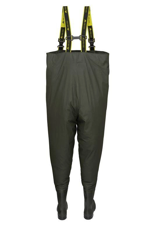 Spodniobuty wykonane z wysokiej jakości materiału poliestrowego. Nowoczesna technologia zgrzewania szwów, gwaratnuje stuprocentową wodoodporność i dużą odporność na uszkodzenia. Kalosze wyposażono w podeszwę z bieżnikiem, co gwarantuje dużą stabilność
