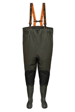 Spodniobuty wykonane z wysokiej jakości wzmocnionego materiału poliestrowego. Dodatkowo wyposażone w kieszonkę na dokumenty i wzmocnienia na kolanach. Kalosze wyposażono w podeszwę z bieżnikiem, co gwarantuje dużą stabilność nawet na śliskim podłożu.