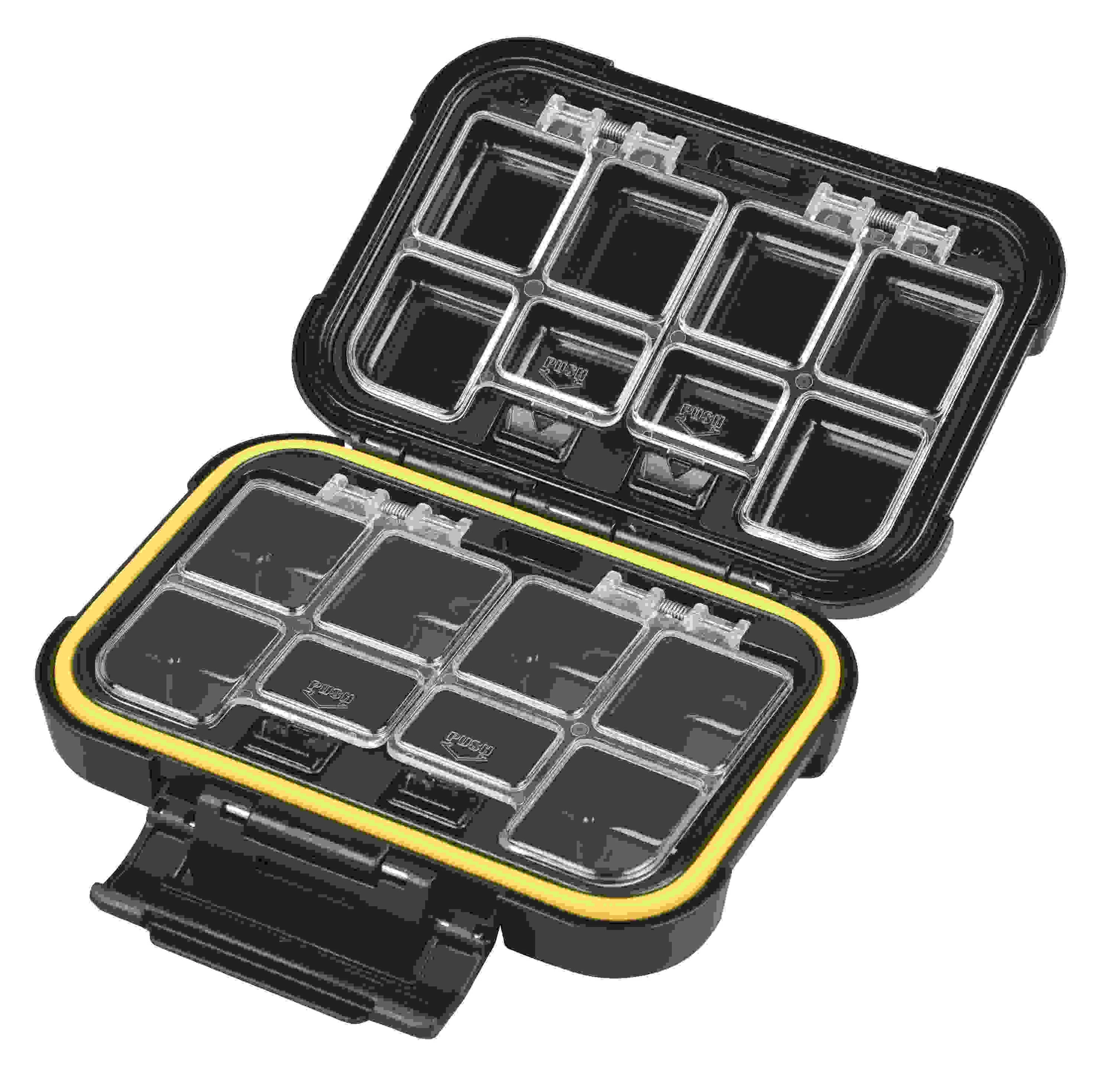 Wszystkie małe akcesoria takie jak krętliki, agrafki, kółeczka łącznikowe i tulejki zaciskowe powinny być wygodnie przechowywane w wysokiej jakości pudełku z małymi wygodnymi przegródkami. Te małe pudełko zajmuje niewiele miejsca i może być wykorzystywane podczas łowienia z łodzi, ale również podczas spacerów z wędką wzdłuż brzegów.