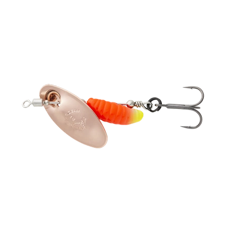 Korpus w kształcie larwy w połączeniu z unikalną akcją oznacza, że ta błystka obrotowa z pewnością skusi drapieżniki do ataku. Obracające się, migające skrzydełko, które przyciąga uwagę ryb, łączy się z subtelnym i atrakcyjnie wyglądającym korpusem. Wbudowany krętlik pomaga uniknąć skręcania się linki, a ilość skutecznych zacięć zwiększa się dzięki obecności bardzo ostrych kotwic oraz równie ostrych, pojedynczych haków.