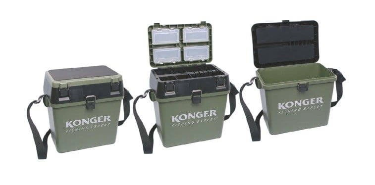 Laminatowa, mrozoodporna skrzynia wędkarska z wyściełanym pianką siedziskiem. W unoszonej do góry klapie umieszczone są cztery zamykane na zatrzaski pudełka na drobny sprzęt wędkarski i przynęty, w dolnej części pokrywy znajdują się kasety z przegródkami na średniej wielkości akcesoria. Pojemnik główny bez trudu pomieści złowione ryby, termos lub wędki podlodowe wraz kołowrotkami.