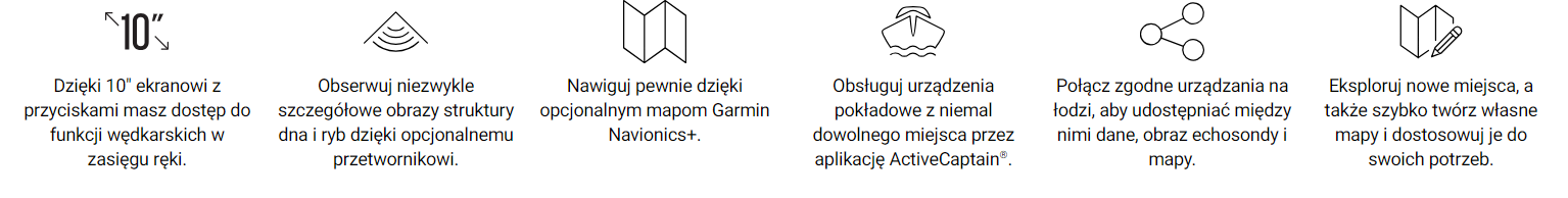 To urządzenie wielofunkcyjne z czytelnym w pełnym słońcu 10″ ekranem dotykowym ma mapę bazową całego świata, a zestaw przetworników zapewnia dodatkową obsługę echosondy tradycyjnej CHIRP i echosondy skanującej Ultra High-Definition.