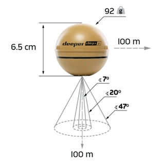 Zasięg Deepera Chirp+ 2 to aż 100 metrów! Dodając do tego kompaktowe wymiary (średnica 65 mm) otrzymujemy sprzęt niemalże idealny, mieszczący się nawet w kieszeni spodni :)