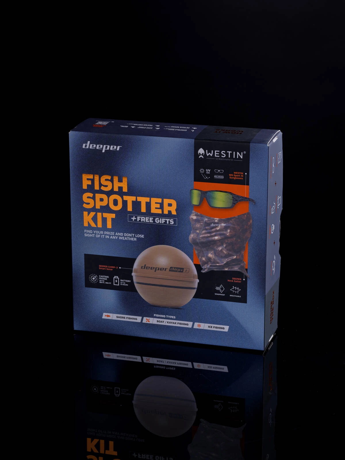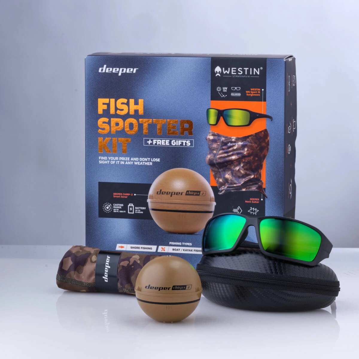 Echosonda DEEPER CHIRP+ 2 w zestawie z okularami polaryzacyjnymi firmy Westin oraz kominem Deeper GRATIS!!!