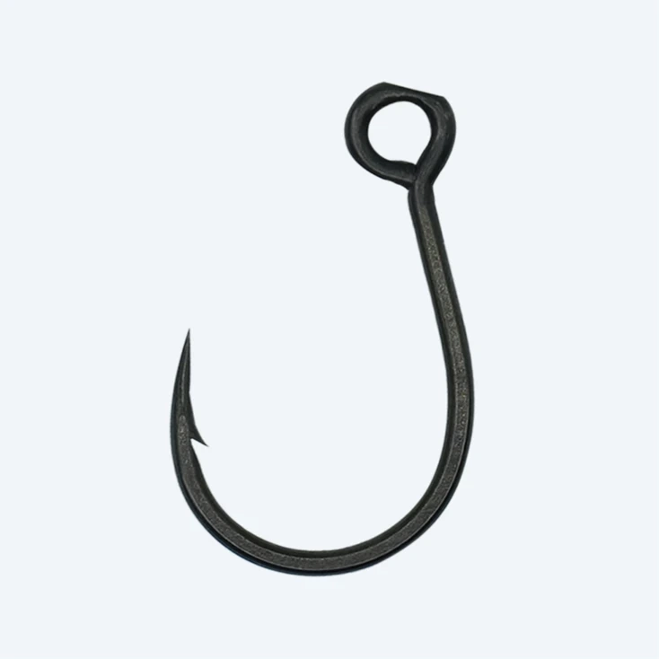 BKK Lonesniper to haki z oczkiem ułożonym równolegle w jednej osi z łukiem kolankowym i grotem. Taki kształt sprawia, że idealnie nadają się do zbrojenia woblerów czy obrotówek i stanowią alternatywę dla klasycznych kotwic. Zbrojenie w pojedynczy hak staje się co raz bardziej popularne, głównie z uwagi na pewniejsze zacięcie. Pojedynczy hak jest rybie po prostu łatwiej połknąć. Niemałe znaczenie ma również mniejsze prawdopodobieństwo ugrzęźnięcia przynęty w zaczepie. Lonesniper został wykonany z bardzo mocnej, węglowej stali oraz pokryty teflonową powłoką Super Slide, która gwarantuje najwyższej jakości ostrość i łatwość penetracji nawet twardego, rybiego pyska. Całości dopełnia przedłużony grot NeedlePoint oraz idealnie wyprofilowany łuk kolankowy.