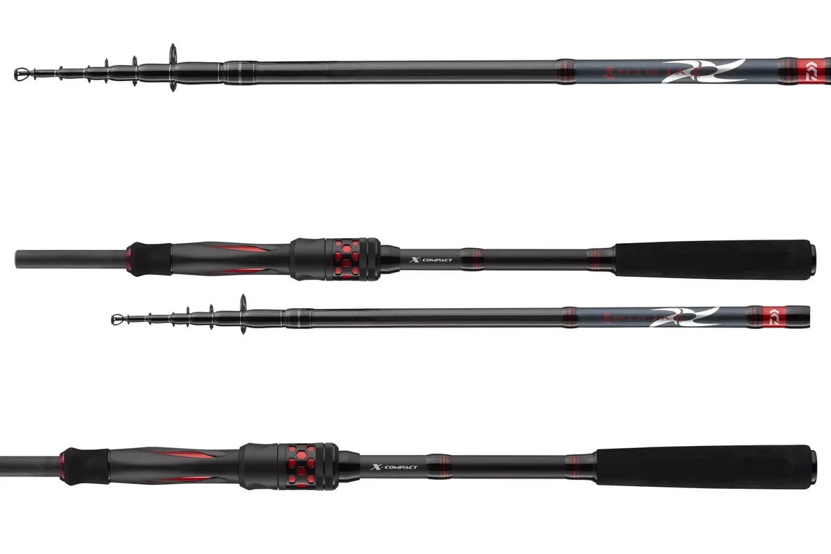 Dwie wędki X-Compact z serii Ninja X to najbardziej kompaktowe wędki spinningowe w całej ofercie wędzisk DAIWA. Po złożeniu mają długość zaledwie 50cm – wędki te można łatwo transportować w plecaku lub walizce i od razu są gotowe do wędkowania. Kompozytowe blanki z włókna węglowego z przelotkami firmy Seaguide nie pozostawiają żadnych życzeń w zakresie rzutów i właściwości podczas holu, dzięki czemu wędki Ninja-X-Compact są w oskonałymi towarzyszami każdej wyprawy wędkarskiej.