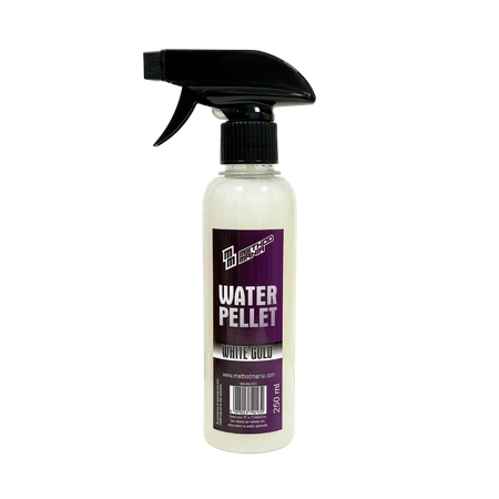 Water Pellet powstał w odpowiedzi na zapotrzebowanie wędkarzy feeder i method feeder. Silnie aromatyzowany atomizer, który dokleja pellet/zanętę, nadaje smak i nowy wymiar mieszanek. Barwi, lekko smuży dając możliwość kreowania własnych miksów na konkretne łowiska. Water Pellet możemy zastosować, również bezpośrednio na koszyk, dzięki czemu każdy rzut możemy wyróżnić inną bombą zapachową.