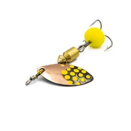 Ta niewielka obrotówka to wszechstronny przynętowy skarb, idealny dla wędkarzy polujących na okonie i pstrągi. Jej smukły korpus wykonany z wytrzymałego materiału zapewnia stabilność w wodzie, a płynne obroty blaszki przyciągają drapieżniki nawet z dużej odległości. Kluczowym elementem jest tutaj mały chwost, umieszczony na haku. Dodaje on całości delikatnych, atrakcyjnych ruchów, dodatkowo wzmacniając efekt wabiący. Chwost zapewnia naturalną prezentację i stymuluje drapieżniki do ataku.