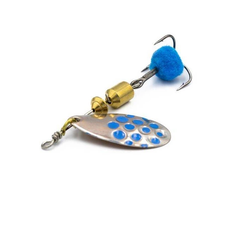 Dla tych, którzy nie lubią wąsko lub szeroko pracujących blach wirowych alternatywą będzie paletka inspirowana skrzydełkiem olympique. Model olimpijski pochodzi z Francji jego amerykański odpowiednik to skrzydełko Indiana. Nasz model jest bardziej eliptyczny, wydłużony ale zachował swój pierwotny zarys. Obrotówka z tym skrzydełkiem pracuje szerzej i wolniej od Longa ale nie jest tak hałaśliwa jak french blade. W naszym odczuciu jest ideałem na pstrągi potokowe, ale sprawdzi się też w połowie okoni, szczupaka, gdy klasyczne modele się rybom „opatrzą".  Kluczowym elementem jest tutaj mały chwost, umieszczony na haku. Dodaje on całości delikatnych, atrakcyjnych ruchów, dodatkowo wzmacniając efekt wabiący. Chwost zapewnia naturalną prezentację i stymuluje drapieżniki do ataku