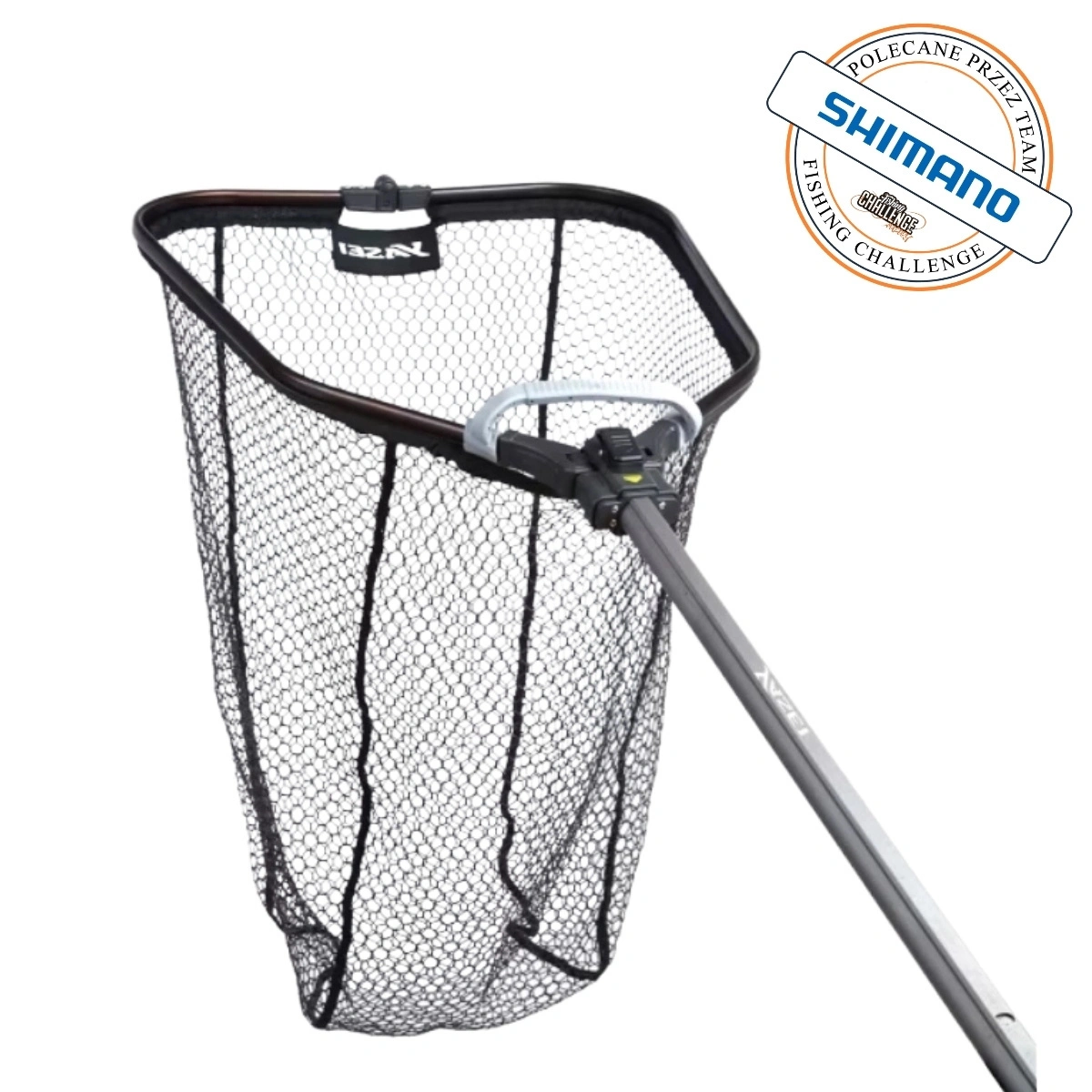 - Wielofunkcyjny podbierak z solidną, składaną ramą i wytrzymałą gumowaną siatką, która minimalizuje zaczepianie się kotwic woblerów.
