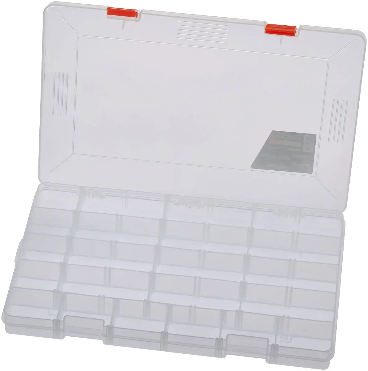Pojemnik na przynęty Select SLHX-0324 ma dość duży rozmiar i smukły profil. Przegródki na całej długości z możliwością montażu przegród pozwalają na umieszczenie wąskich przynęt, przyponów i akcesoriów o niemal dowolnej długości. Pokrywa wyposażona jest w obrotowe zawiasy oraz niezawodne zapięcia, które gwarantują długotrwałą eksploatację produktu.