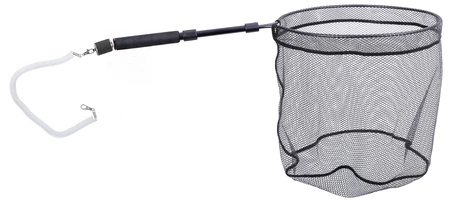 Świetny podbierak z krótką rączką, niezbędny podczas brodzenia w poszukiwaniu drapieżników zarówno podczas spinningowania jak i połowu na muchę. Kosz z gumowaną siatką, zdecydowania ułatwia podebranie trzepoczącej się ryby, a dodatkowy łącznik z magnesem zamontowany na końcu rękojeści, pozwala zamocować podbierak do kamizelki czy spodni. Takie rozwiązanie pozwala zachować wolne ręce i ułatwia skuteczne wędkowanie.