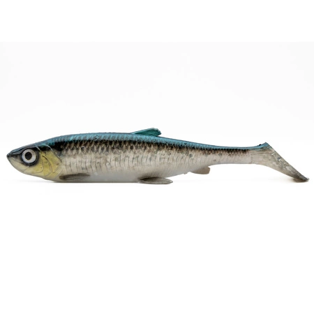 Oparty na skanie prawdziwego śledzia bałtyckiego, ale imituje także wiele innych słodkowodnych ryb drapieżnych, takich jak sieja, płoć itp. Przynęta o luźnym korpusie z łopatkowym ogonem charakteryzuje się nieskazitelnymi detalami oraz fantastyczną akcją podczas jej prowadzenia. Szerokie, płaskie boki migają, gdy przynęta pracuje obracając się na boki w wodzie. Przegubowe, realistyczne płetwy dodają wyjątkowej pracy przynęcie. Dodatkowo guma wyposażona jest w szklaną grzechotkę, która jeszcze bardziej pobudza drapieżniki do brania. Super miękki materiał PVC, o oszałamiających kolorach i wyzwalającym zapachu.