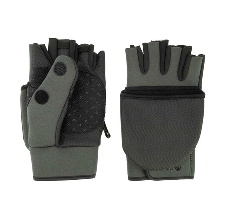 Rękawiczki wędkarskie z możliwością odsłonięcia palców, wykonane z neoprenu i podszyte polarem. Silikonowy nadruk zapewnia pewny chwyt. Świetnie sprawdzą się do łowienia podlodowego, wypadów spinningowych oraz innych aktywności, nie tylko wędkarskich.Zalety:
