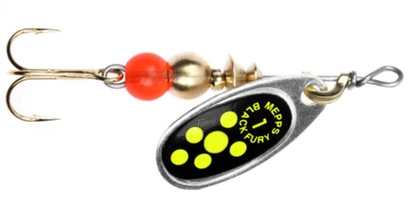 Obrotówka Mepps Black Fury #1 | 3,5g | Srebrny/Seledynowe Kropki