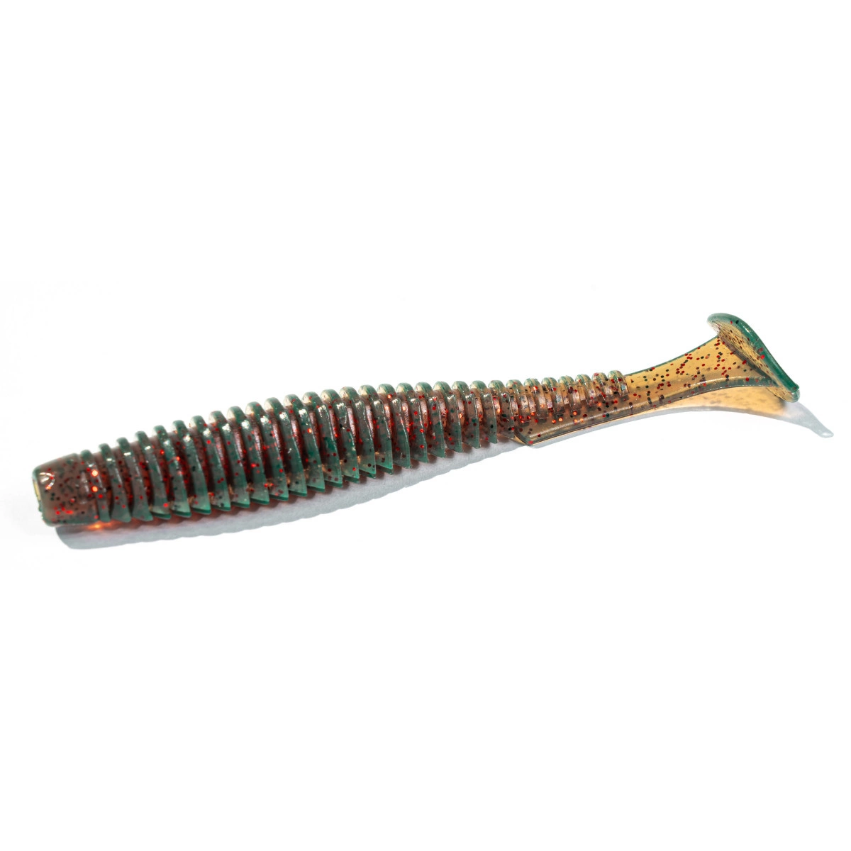 to przynęta, która z pozoru wygląda podobnie do innych ripperków. Jednak kiedy przyjrzysz się uważnie zauważysz zalety, które decydują o tym, że jest aż tak skuteczny. Przynęta jest efektem wielu lat spędzonych na zawodach wędkarskich i była wielokrotnie poprawiana. Przekrój korpusu zwęża się w części brzusznej. Ten kształt w połączeniu z charakterystycznym kilem przy płetwie ogonowej sprawia, że U-Shad bardzo dobrze radzi sobie w nurcie. Prążki posiadają specjalne wycięcia na grzbiecie oraz na brzuszku. Dzięki temu możesz go zbroić w hak offsetowy i prowadzić na czeburaszce. Bardzo dobrze radzi sobie również uzbrojony w klasyczną lub trójkątną główkę jigową. Miękki silikon jest wystarczająco wytrzymały aby wytrzymać wiele brań. W dodatku został nasączony silnym zapachem raka. Czy można oczekiwać czegoś więcej?