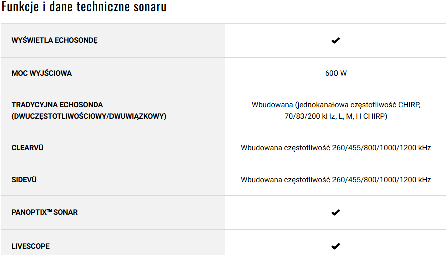 Dane techniczne Echosondy: