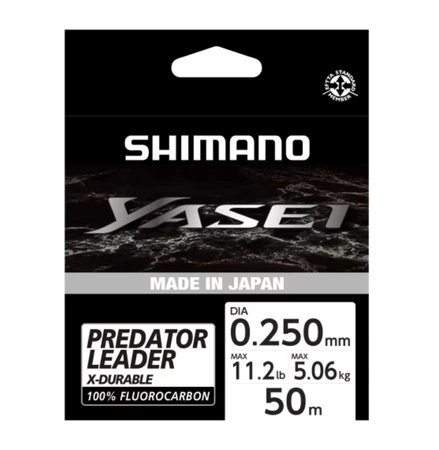 Shimano Yasei Predator to najwyższej jakości, wyprodukowany w Japoni materiał przyponowy wykonany w 100% z fluorocarbonu o podniesionej odporności na przetarcia - zarówno w wyniku zahaczenia o podwodną przeszkodę czy strukturę dna, jak i w spotkaniu z ostrymi zębami drapieżników. Dzięki właściwej elastyczności, nawet w przypadku dużych średnic, wiązanie węzłów jest wyjatkowo proste, a za sprawą niskiego stopnia odbijania refleksów świetlnych, pozwala on przechytrzyć nawet najostrożniejsze osobniki w przejrzystej wodzie. Dostarczany na szpuli o dużej średnicy, dla mniejszego skręcania się przyponu, z wygodnym klipsem nieuszkadzającym podpiętego, końcowego odcinka fluorocarbonu