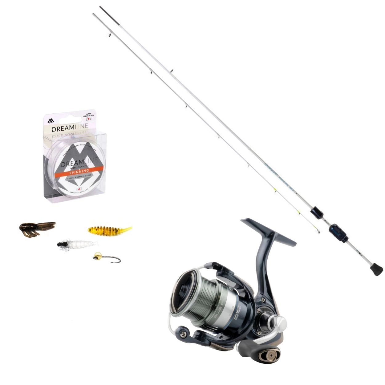 Zestaw zawiera wszystko, co potrzebne do skutecznego połowu białorybu na spinning:
