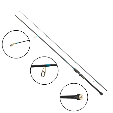 Zandera NX zachwyca eleganckim designem i najwyższej klasy wykonaniem. Turkusowa owijka złotych przelotek świetnie kontrastuje z matowym, smukłym blankiem. Sylwetki sandaczy nad rękojeścią, złote napisy i detal sandacza na końcu wędki podkreślają dbałość o szczegóły użyte podczas tworzenia tej wędki. Jeśli szukasz szybkiej, wytrzymałej i czułej wędki na sandacze o świetnym designie, Zandera jest właściwym wyborem.