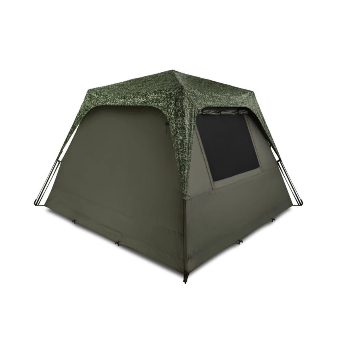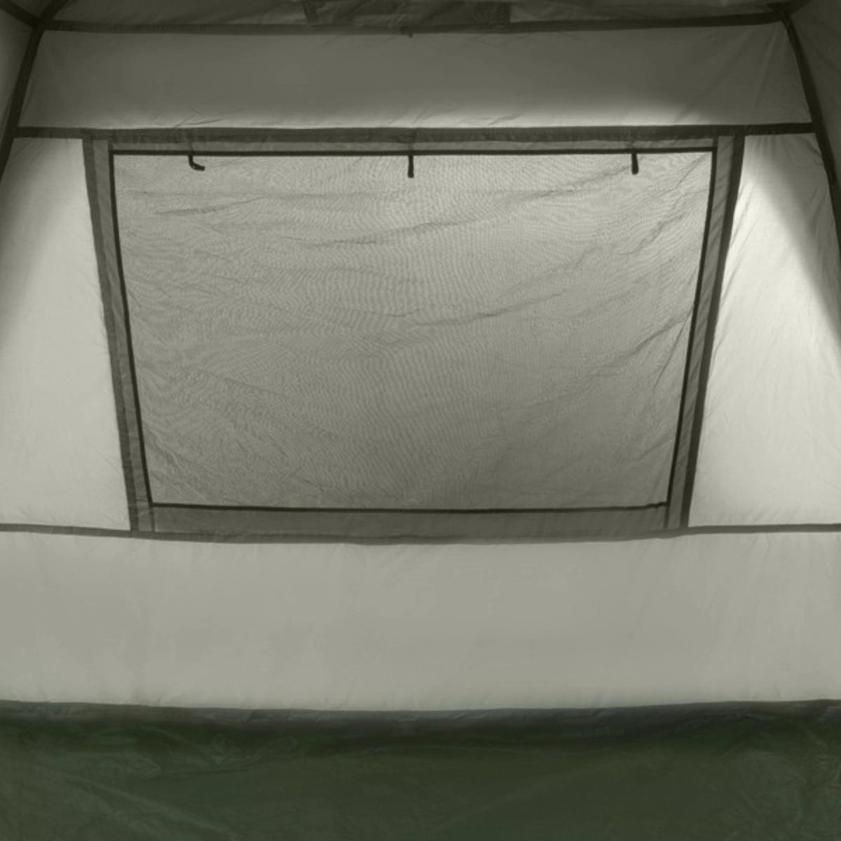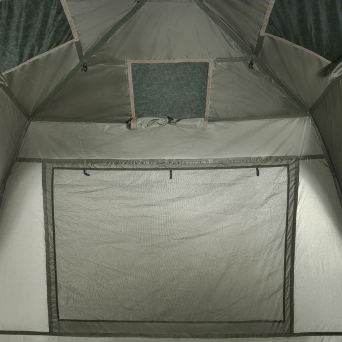Kolejną dużą zaletą jest rozbudowany system wentylacji, który składa się z kilku okien i osłony. Obszerna moskitiera umieszczona jest zarówno na przedniej, jak i tylnej ścianie, a cztery mniejsze okna znajdują się bezpośrednio w suficie namiotu. Dzięki temu powietrze może przepływać do środka, gdy nie możesz przewietrzyć całego namiotu za pomocą dużych okien. Z pewnością docenisz to w nocy, kiedy pomoże to zmniejszyć skraplanie się pary wodnej na wewnętrznych ścianach. Daszek nad wejściem stanowi dodatkową ochronę przed słońcem i deszczem. Dach jest przymocowany do całej konstrukcji za pomocą szeregu klipsów, aby uniknąć niepotrzebnych ruchów spowodowanych wiatrem. CUBICON posiada również 4 stabilizujące linki i kołki w pakiecie, a także standardową podłogę mocowaną za pomocą wysokiej jakości zamka błyskawicznego na całym obwodzie. Koniec z brudem i niechcianymi wizytami gryzoni!