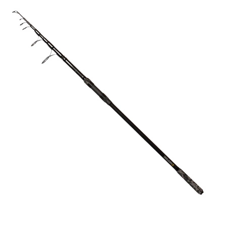 Wysokomodułowy blank z węgla 24T sprawia, że wędka jest niezawodna i wyjątkowo kompaktowa i idealnie nadaje się do połowu karpi. Półparaboliczną akcję uzupełniają wysokiej klasy komponenty. Wędzisko posiada lekkie przelotki SIC. Stylowy uchwyt EVA w kamuflażu (Urban-Camo) zapewnia elegancką, kompaktową i niezwykle uniwersalną serię teleskopowych wędek karpiowych, które sprawdzają się tak samo dobrze, jak wyglądają.