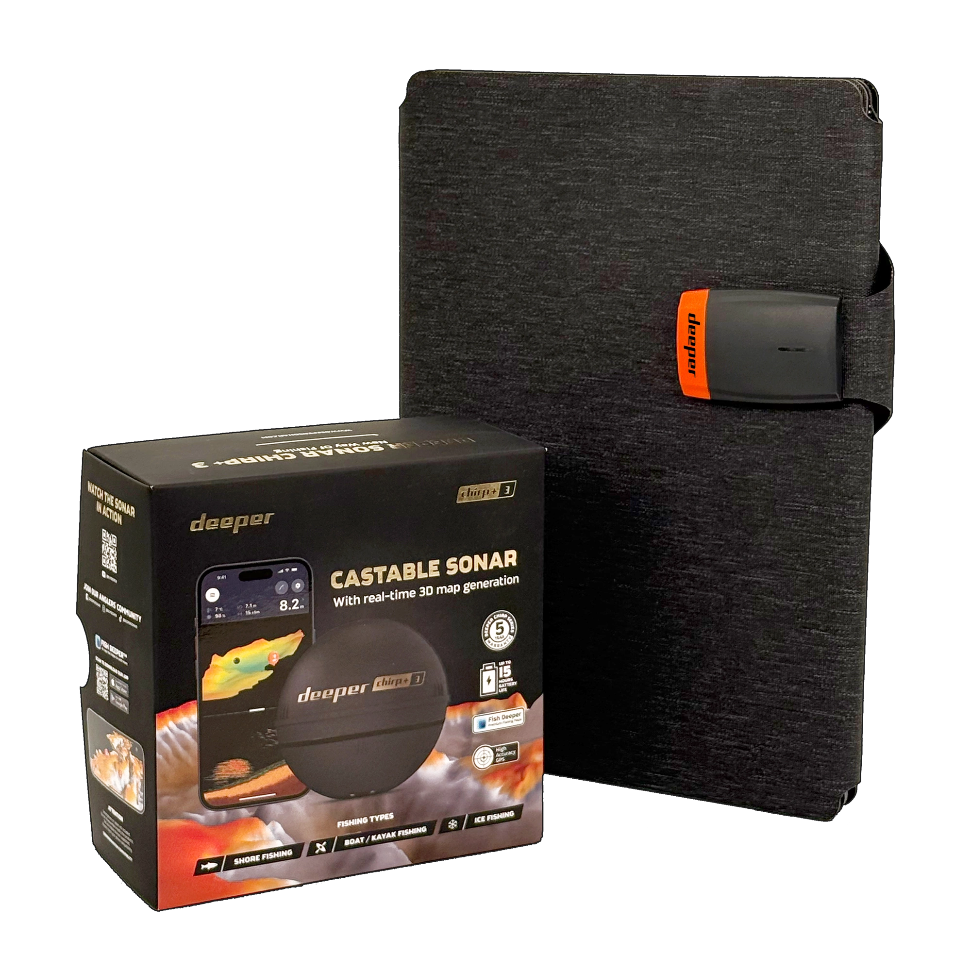 Deeper CHIRP+ 3 to najbardziej zaawansowany, zarzucany sonar do wędkowania, który umożliwia tworzenie osobistej batymetrii 3D i wyjątkowo precyzyjne skanowanie dna. W połączeniu z aplikacją Fish Deeper™ możesz rejestrować i analizować swoje wyprawy wędkarskie, a także tworzyć własne mapy batymetryczne! Echosonda ta posiada wszystkie sprawdzone technologie, do których przyzwyczaiła nas firma Deeper. Możliwość sondowania na lodzie, przykręcenie do specjalnego uchwytu i łowienie z kajaka czy pontonu to tylko niektóre z nich.