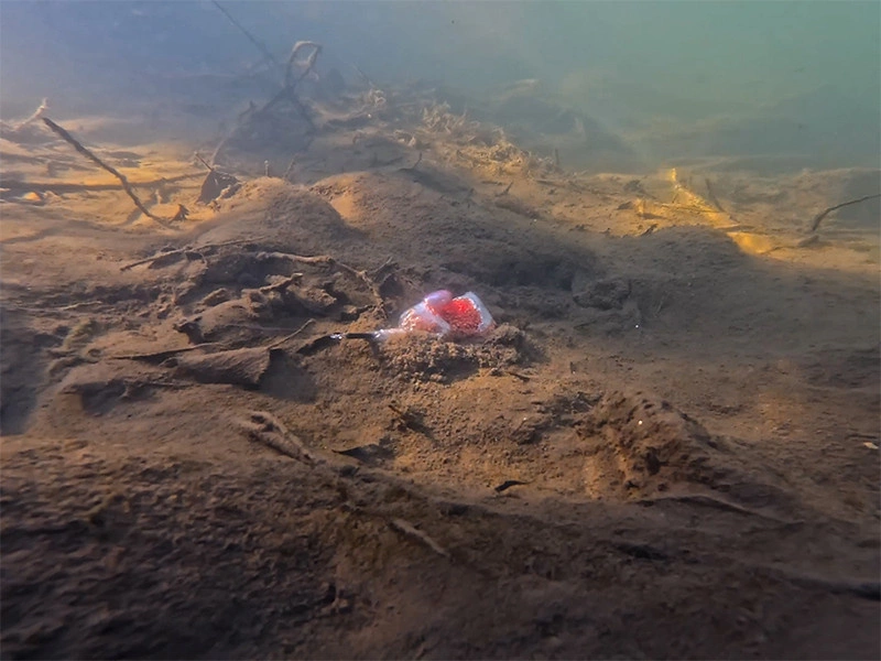 Aby jeszcze bardziej odróżnić go od innych przyponów inline, zespół projektowy Delphin opracował zdejmowaną sekcję ołowiu z rowkiem na żyłkę, zabezpieczoną gumową tuleją. Wystarczy zsunąć tuleję, przełożyć żyłkę przez rowek i wymienić ciężarek bez przecinania żyłki głównej lub przyponu. Taka konstrukcja oszczędza czas i sprawia, że zmiana ciężarka nie wymaga wysiłku.
