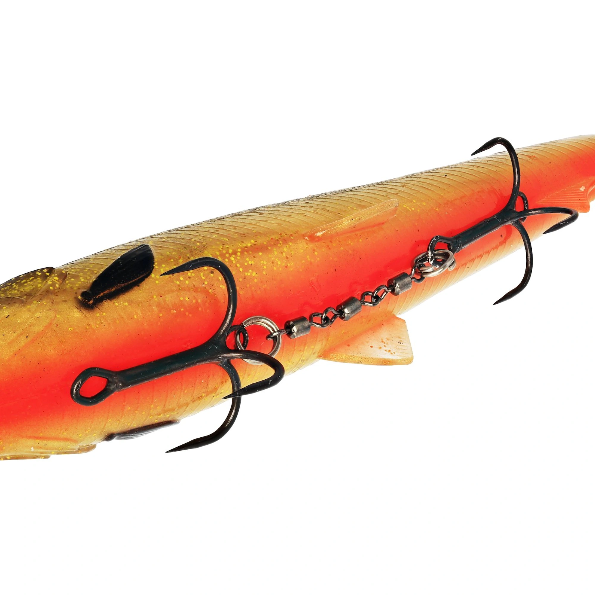 Add-On Treble to kolejny innowacyjny dodatek do oferty Westin. Unikalny system pinów umożliwia łatwe mocowanie kotwicy do dowolnej przynęty miękkiej. Niskoprofilowe płaskie oczko zapewnia, że dodatkowa kotwica będzie ściśle przylegał do przynęty miękkiej w idealnej pozycji. Dodatkowo wspawane oczko na końcu kotwicy ułatwia dodanie kolejnego elementu dozbrojki. Idealny do tworzenia własnych „niewidocznych” stingerów podczas łowienia wybrednych ryb.