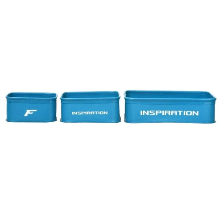 Flagman Inspiration EVA Set Large to praktyczny komplet pojemników przeznaczonych do przechowywania zanęt, przynęt oraz drobnych akcesoriów wędkarskich. W skład zestawu wchodzi pojemny kontener główny o objętości 4,8 l i wymiarach 30 × 20 × 8 cm, w którym znajdują się dwa mniejsze pojemniki o pojemności 2,5 l (19,5 × 16,5 × 8 cm) oraz 1,5 l (16,5 × 11,5 × 8 cm).