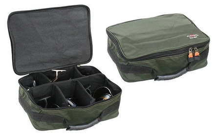 Uniwersalny, usztywniany, pokrowiec wędkarski na kołowrotki od firmy MIKADO, o wymiarach 38x29x13 cm, pozwala bezpiecznie i wygodnie transportować oraz przechowywać kołowrotki i szpule zapasowe. Wnętrze pokrowca ma wydzielone, regulowane, przegrody, dzięki czemu odpowiednio ułożone kołowrotki i szpule nie obijają się o siebie, nie powodując wzajemnych uszkodzeń.